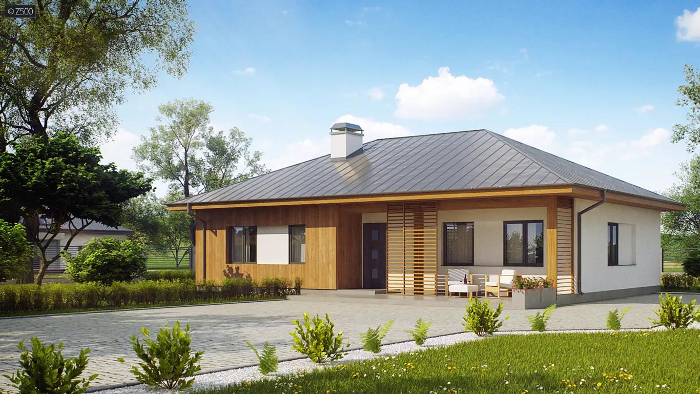 Projekt Z176 to niewielki i bardzo funkcjonalny dom parterowy. Klasyczna bryła przykryta jest prostym, czterospadowym dachem. Projekt ten jest idealną propozycją dla osób szukających niewielkiego i funkcjonalnego domu parterowego. Na stosunkowo niewielkiej powierzchni mamy do dyspozycji wszystko co potrzeba. Dla lepszego funkcjonowania, wnętrze domu domu podzielono na dwie strefy: dzienną (salon z otwartą kuchnią, spiżarnia) oraz nocną (trzy pokoje z dostępem do łazienki). Bogate przeszklenia we wszystkich pomieszczeniach, naturalnie doświetlają wnętrze.