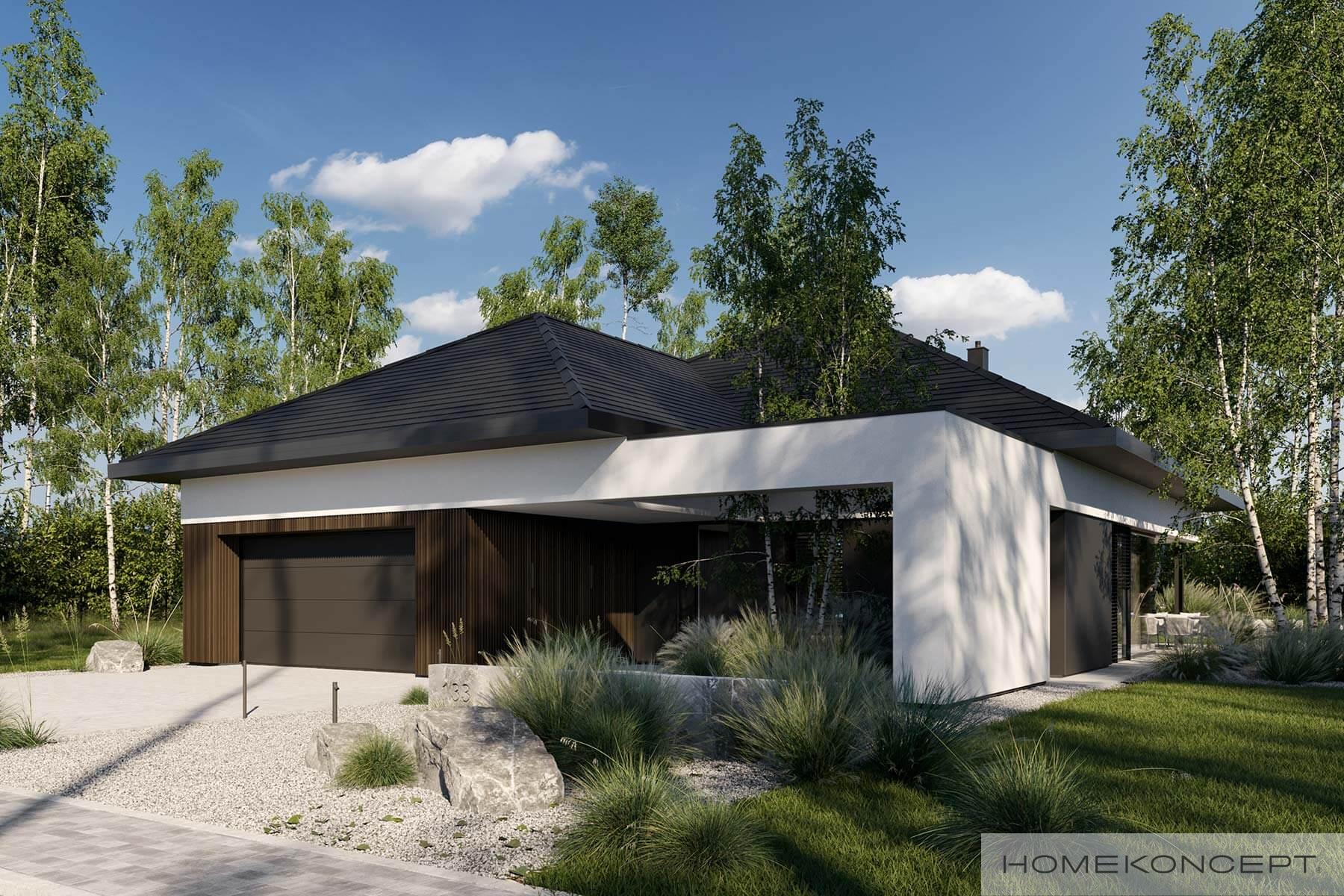 HOMEKONCEPT 133 to niewątpliwie bardzo ciekawa pozycja w naszej ofercie. Uwagę zwraca komfortowo i funkcjonalnie zaprojektowane wnętrze w „kompaktowym rozmiarze” 130 m2. Warto również podkreślić fakt, iż dom nie wymaga szerokiej działki – zmieści się już na parceli o szerokości 22,3 m. Jesteśmy przekonani, że dla wielu z Was ten parterowy dom z garażem może stać się spełnieniem marzeń.